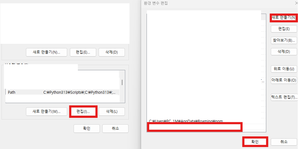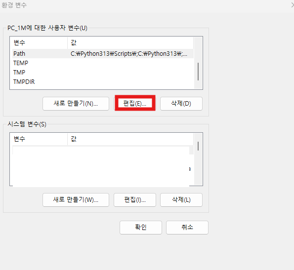 - "사용자 변수" 섹션에서 "Path" 선택
