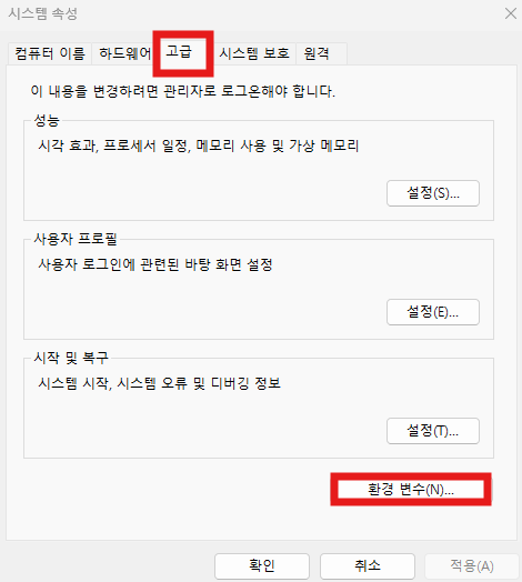📌 1. 시스템 환경 변수 설정 열기